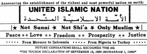 The Qur’an’s number “19” is found in Sura “74” and 19 x 74=1406 (THIS YEAR). This official announcement for the establishment of the UNITED ISLAMIC NATION comes on the first day of the Islamic year 1406.