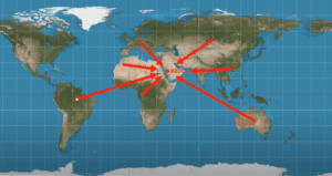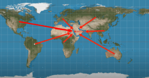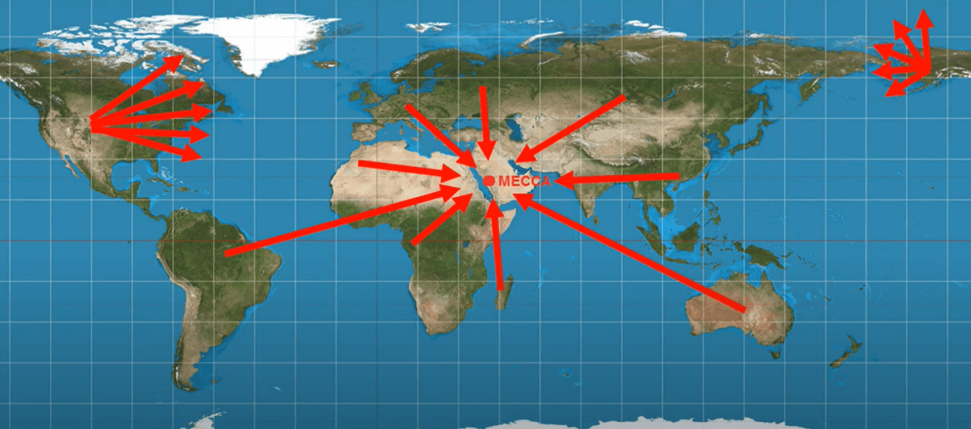 It’s a well-established fact by now that if you live in Europe, Mecca is towards South-East. In Asia, Mecca is towards South-West, or West. In Australia and the islands around it, Mecca is towards North-West; in sub-Saharan Africa, Mecca is towards North-East; and in North Africa Mecca is towards East or slightly South of East; in South America, Mecca is towards North-East. And people agree about these regardless of the type of map they use – whether they use a flat map, or a globe.