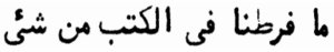 « = The phrase, “We did not leave anything out of this book,” is in Verse 38 (19×2) and consists of 19 Arabic letters (6:38). - «