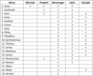 So, from the time when Jesus was born until Jesus comes back, there are 19 messengers. Here they are: